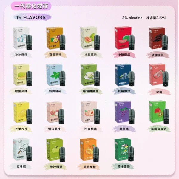 煙油成分:甘油、丙二醇、香精、有機尼古丁
